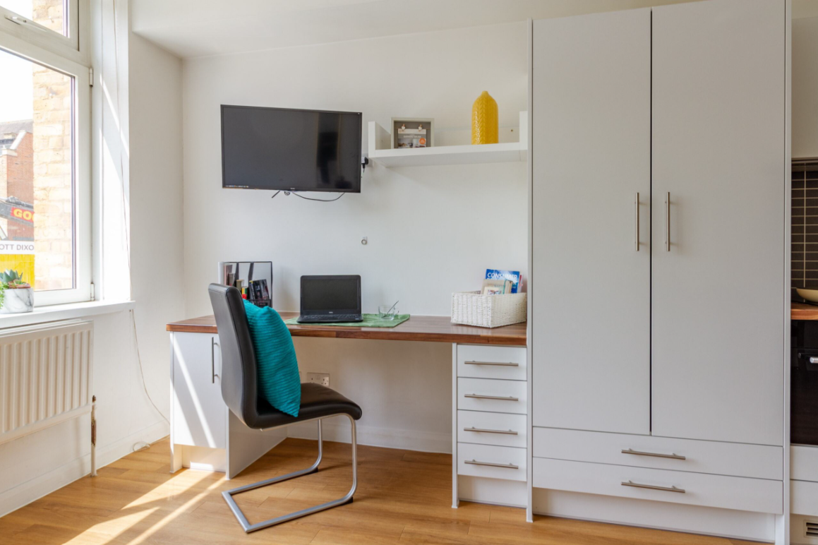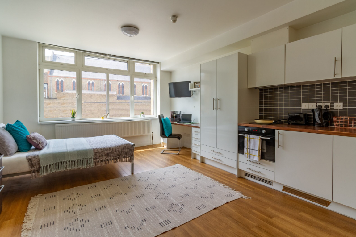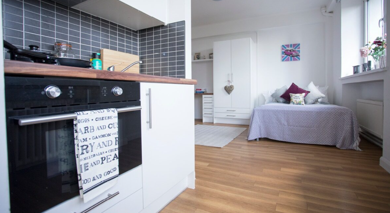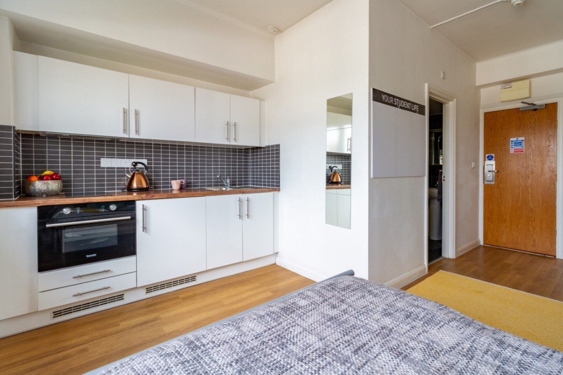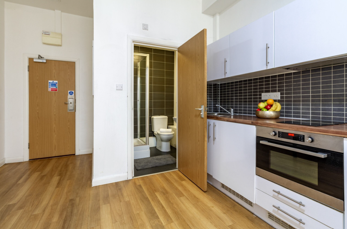 Studio room with a private kitchen and en-suite bathroom.