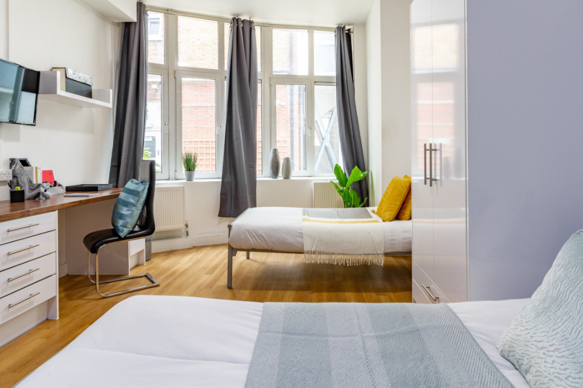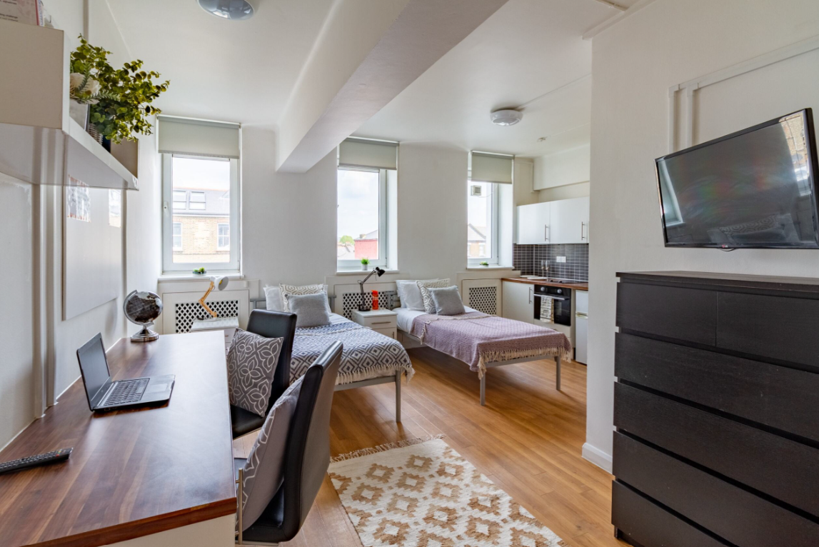 Studio apartment rooms with two comfy beds