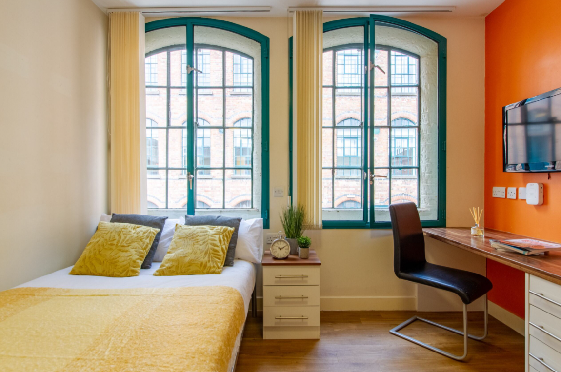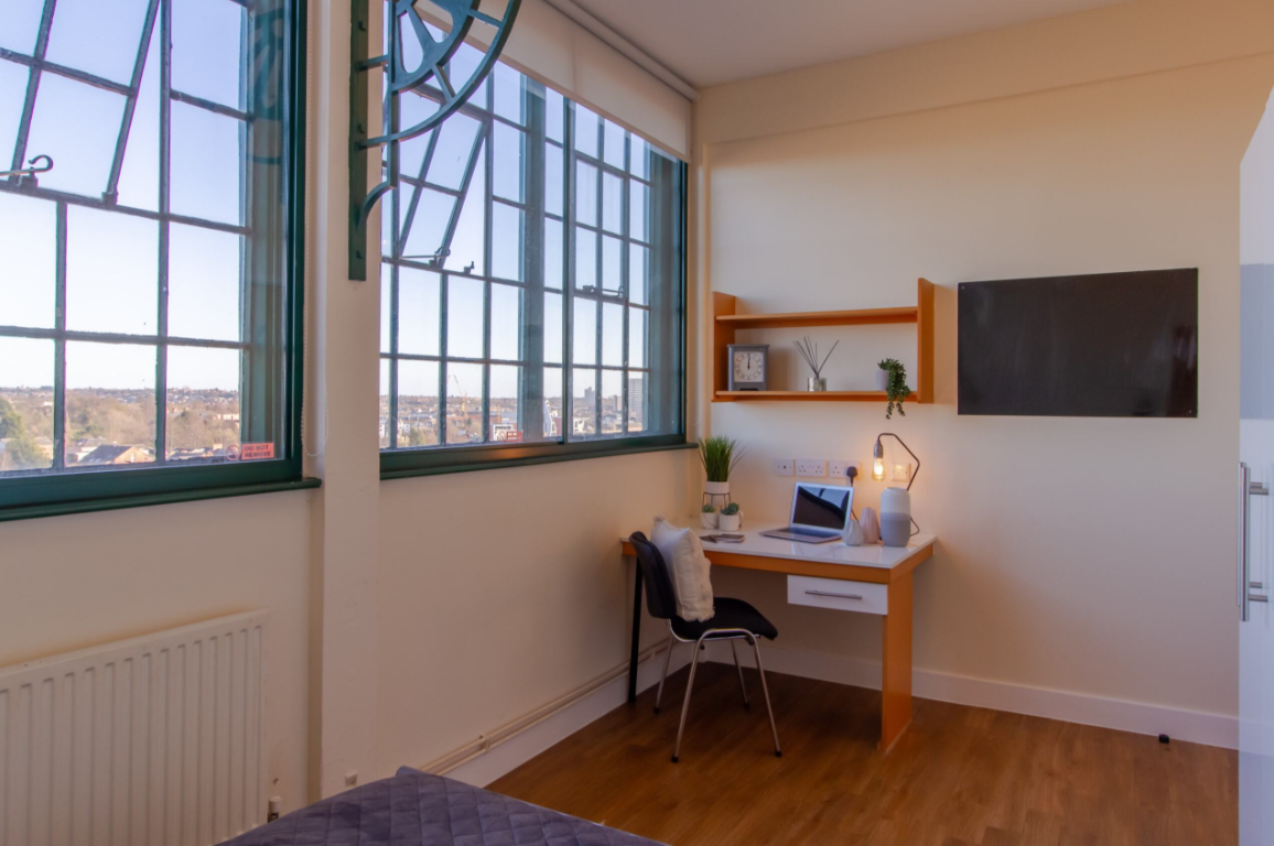 Nottingham Square offers characterful student accommodation in a Grade II listed building near Nottingham city centre, featuring a range of studio apartments and cluster flats with open‑plan kitchens, social lounges and bike storage. Its central location and included bills make it a strong choice for student accommodation in Nottingham.